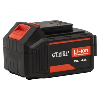 Аккумулятор литий-ионный СТАВР АКБ-20/4 Тип аккумулятора: Li-Ion, перезаряжаемый Маркировка: 10ICR18/65 Максимальное выходное напряжение: 20 В Номинальная емкость: 4,0 А•ч Рекомендуемое время зарядки: 2 часа Полярность указана на корпусе Индикатор заряда: имеется Устройство аккумулятора: слайдер Масса: 0,7 кг