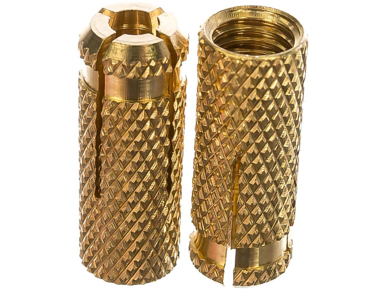 Анкер забивной М8 латунный представляет собой втулу с внутренней резьбой и распорным конусом, предназначенный для предварительного или сквозного монтажа в деревянных и металлических конструкциях.
