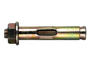 Анкерный болт с гайкой оснащен фиксирующей гильзой, длина которой равна размерам стального стержня. На хвостовой части шпильки выполнена клинообразная головка. При завинчивании гайки она смещается по резьбовой части. В результате перемещения происходит распирание втулки.