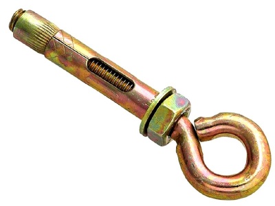 Анкерный болт с кольцом 10*100 М8 представляет собой крепежное изделие в виде стальной шпильки с конусообразным наконечником с одной стороны и гайкой с кольцом с другой. При закручивании гайки происходит смещение шпильки с конусообразным элементом относительно втулки, вызывая ее распор. Тем самым происходит надежная фиксация крепежа в материале основания.