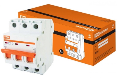 Автоматический выключатель ВА47-29 3Р 10А 4,5кА х-ка С. TDM