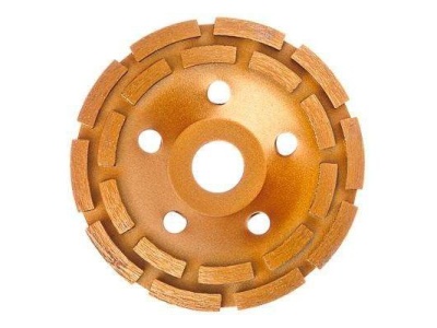 Чашка алмазная зачистная двухрядная ЕРМАК диаметром 125 мм предназначена для шлифовальных работ по бетону, мраморным, гранитным и другим поверхностям, в том числе для камня и кирпичной кладки. Двухрядная сегментированная рабочая поверхность обеспечивает качественную и быструю зачистку обрабатываемого материала, в том числе обладающего повышенной вязкостью. Результат: идеально гладкая отполированная поверхность. Изделие отличается износоустойчивостью и высокой производительностью.