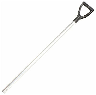 Черенок алюминиевый предназначен для крепления к пластиковым лопатам. Приспособление выполнено из алюминия - легкого материала, не дающего лишней нагрузки на руки при работе. Черенок заканчивается эргономичной и крепкой V-образной ручкой.