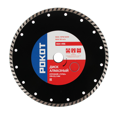 Диск отрезной алмазный РОКОТ ТУРБО 230×22,2 мм. Для резки бетона, камня, кирпича. Турбо-сегментный, быстрый рез. Вес 0,390 кг.