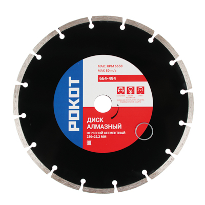 Диск отрезной алмазный сегментный РОКОТ 230×2,0×22 мм. Для резки бетона, железобетона, кирпича. Усиленный сегмент. Вес 0,466 кг.