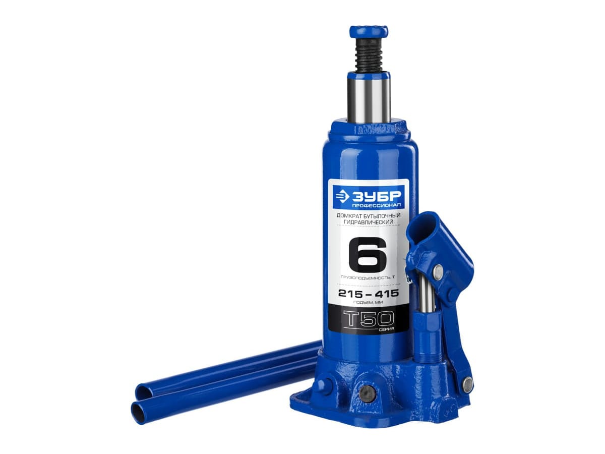 Домкрат гидравлический бутылочный 6т, высота подъема 215-415мм в кейсе ЗУБР. Мощный домкрат для коммерческого транспорта и тяжелых внедорожников. Грузоподъемность 6 тонн, подъем от 215 до 415 мм. Упакован в ударопрочный кейс. Все преимущества гидравлики ЗУБР в компактном формате. Характеристики: грузоподъемность: 6 т | мин. высота: 215 мм | макс. высота: 415 мм | тип: бутылочный | бренд: Зубр | страна: Китай
