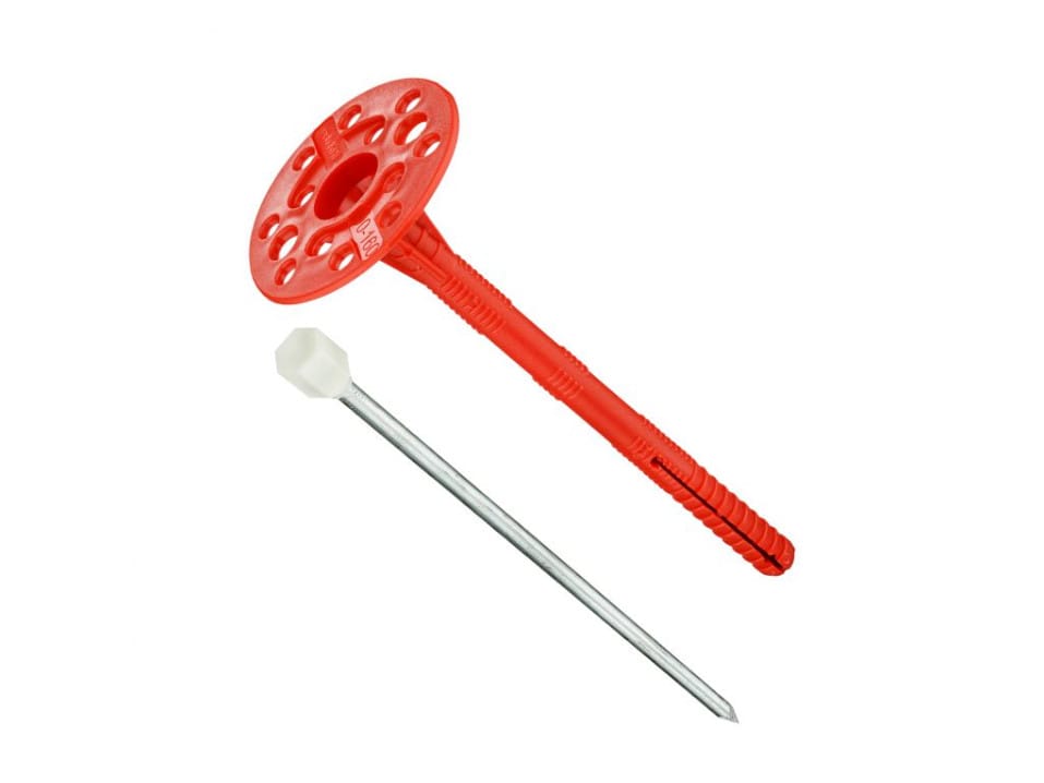Состоит из дюбеля с двухсегментной распорной частью, имеющего увеличенную прижимную шайбу и стального гвоздя с термоголовкой, предотвращающей образование такого явления как «мостик холода».