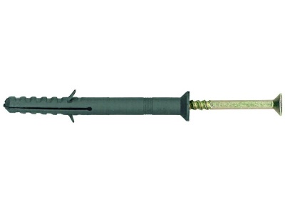 Все описание Дюбель-гвоздь потайной бортик 6/40 — состоит из следующих элементов: дюбель с грибовидным бортиком и двухсегментной распорной зоной, распорный элемент – специальный гвоздь с потайной головкой с крестообразным шлицем и усиленным подголовником. Дюбель изготовлен из полипропилена, гвоздь – из углеродистой стали, покрытие – желтый цинк. Дюбель-гвоздь предназначен для крепления строительных материалов и изделий к основаниям из бетона, полнотелого кирпича, строительного камня. Применяется для сквозного монтажа кронштейнов, дверных коробок, оконных рам, кабельных каналов, обрешетки, гипсокартонных листов (ГКЛ), гипсоволокнистых листов (ГКЛ) и т.д. Для установки необходимо предварительно просверлить отверстие. Прочность крепежа достигается расклиниванием дюбеля в отверстии гвоздем в момент удара молотком. С помощью крестообразного шлица на головке гвоздя можно легко ослабить или усилить крепеж, а также разобрать его.