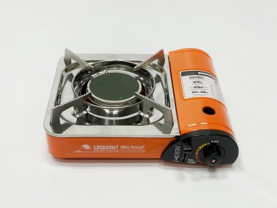 Простота и удобство в обращении, надежность конструкции - это пожалуй самые важные свойства настольной газовой плиты "Следопыт Ultra EnergY".nОтличный вариант, который можно порекомендовать для использования как на домашней кухне, так и на кухне загородного дома, в дачном домике или во время отдыха на открытом воздухе.nПлита оборудована системой пьезоэлектрического розжига горелки и блоком управления подачей газа, а на время хранения и транспортировки размещается в пластиковом кейсе.nВ качестве топлива используются газовые смеси в баллонах с нажимным клапаном и цанговым захватом PF-FG-220 (220 г).nНастольная газовая плита Следопыт-Ultra EnergY предназначена для приготовления пищи как в домашних условиях, так и за пределами жилища (на отдыхе, рыбалке, охоте и т.п.).nХарактеристики:nпьезоэлектрический розжиг;nмощность - 1,5 кВт;nрасход топлива - 110 г/ч;nтип используемых баллонов - нажимной с цанговым захватом.