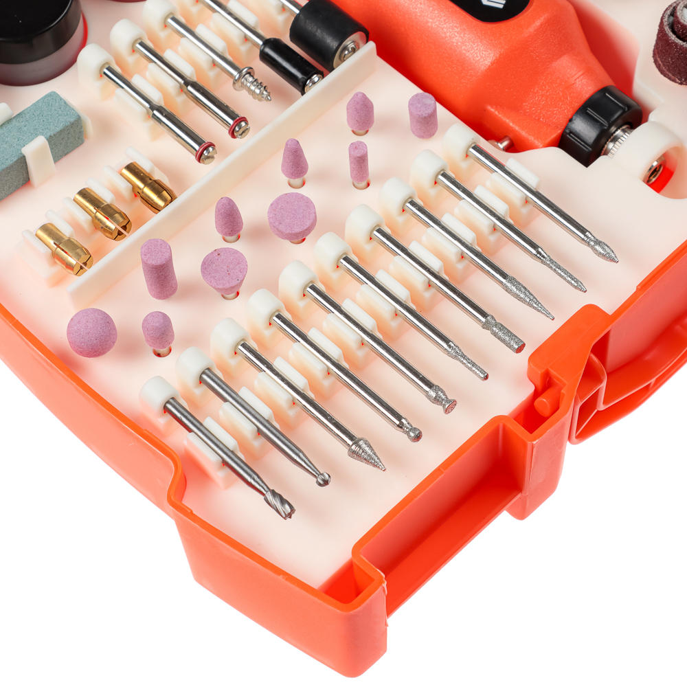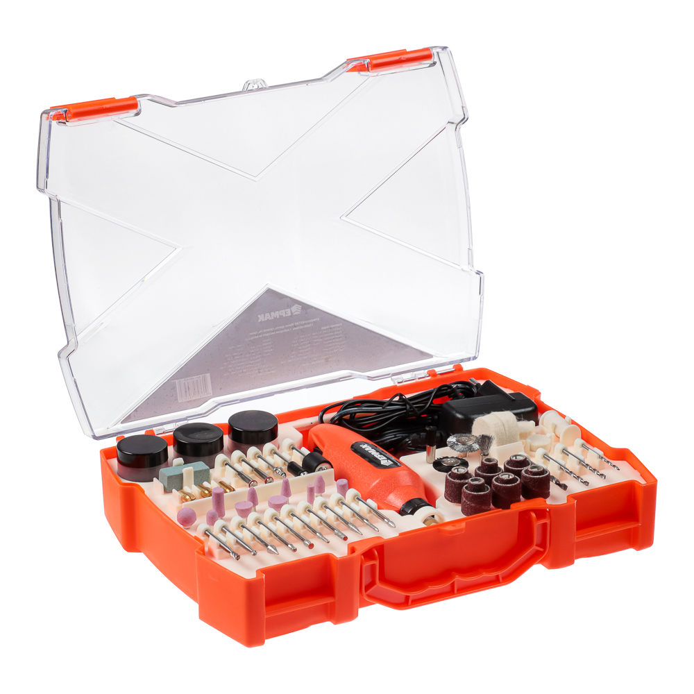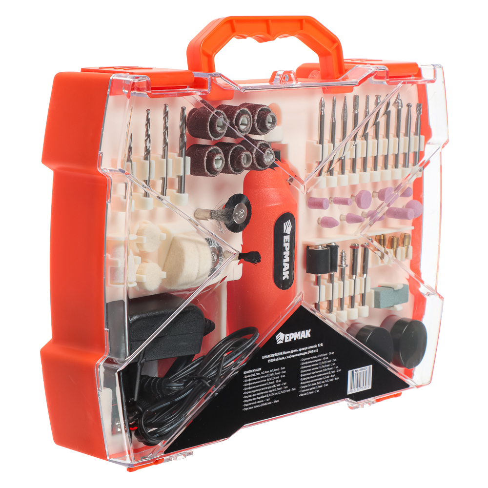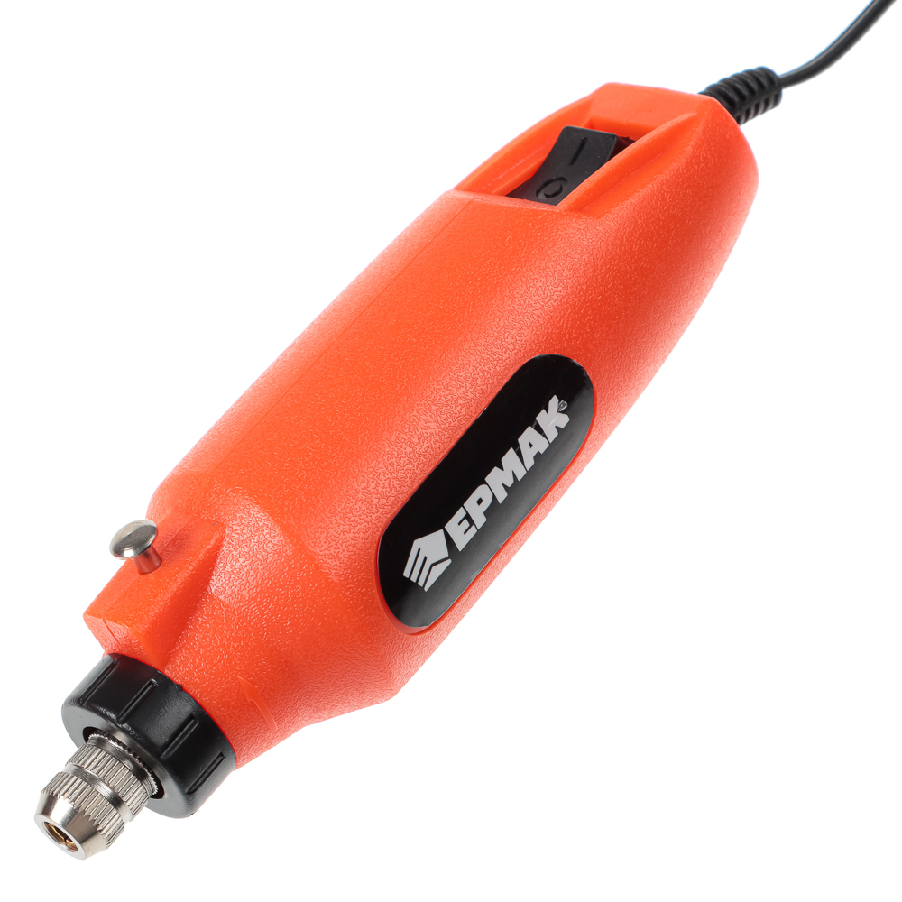 Мини-дрель ЕРМАК — это универсальный инструмент, который подойдёт для выполнения различных задач. С его помощью вы сможете выполнять такие работы, как нанесение гравировки, финишная шлифовка, сглаживание острых граней или заусенцев, сверление небольших отверстий. Инструмент оснащён щеточным двигателем мощностью 12 Вт и способен развивать скорость до 15000 об/мин. Это позволяет ему эффективно справляться с различными материалами. Благодаря широкому выбору насадок мини-дрель ЕРМАК станет незаменимым помощником в вашем арсенале инструментов.