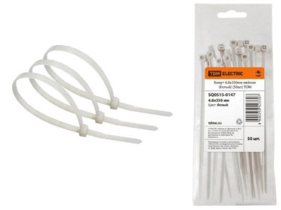 Хомут TDM 4,8х350 мм, нейлон, белый, 50 шт. SQ0515-0147 применяется для увязки в пучок и монтажа кабелей, проводов.