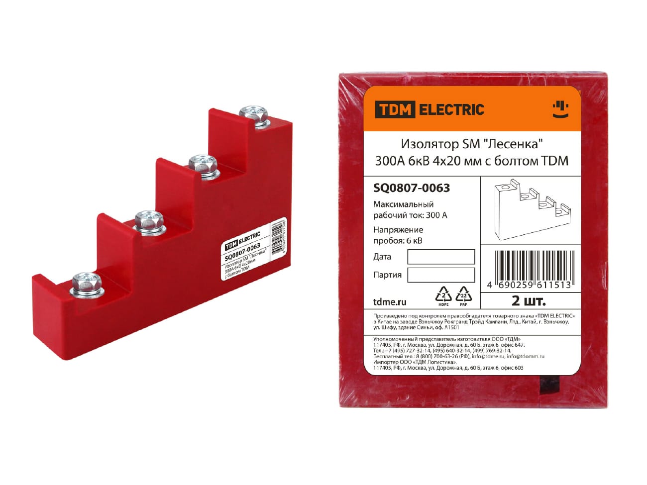 Изолятор "Лесенка" SM 300А 6кВ 4*20мм с болтом TDM (2шт/уп)