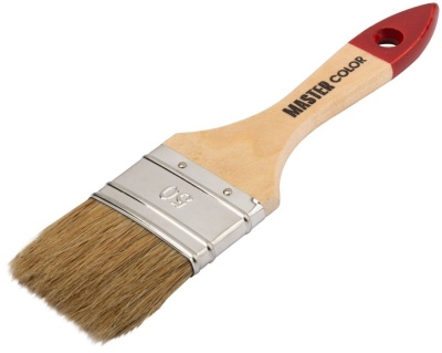Флейцевая кисть с натуральной щетиной (55% топс) и лакированной ручкой, ширина 50 мм. Качественный инструмент для нанесения всех видов ЛКМ. Лакированная ручка защищена от влаги.