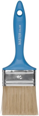 Флейцевая кисть с ПЭТ-щетиной, шириной 70 мм и толщиной пучка 12 мм. Широкая кисть для быстрого нанесения водных красок и лаков. Нержавеющий обжим.