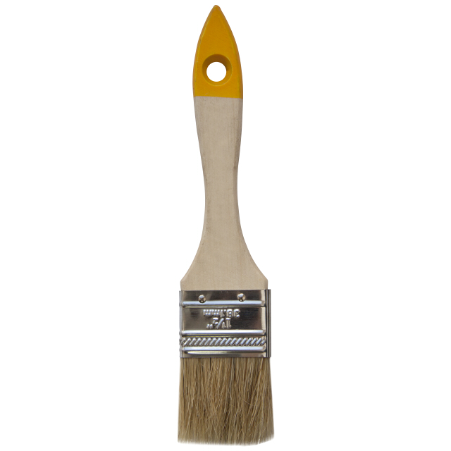 Плоская кисть "Хобби" со смешанной щетиной 38 мм. Универсальный инструмент для всех видов малярных работ. Отличается хорошей упругостью и износостойкостью.