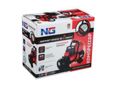 Компрессор автомобильный манометр, штекер прикур, LED фонарь, 12V, 120W, 35 л/мин, металл (8шт/кор)