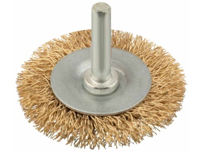 Корщетка дисковая прямая со шпилькой стальная латунированная волнистая проволока 50мм