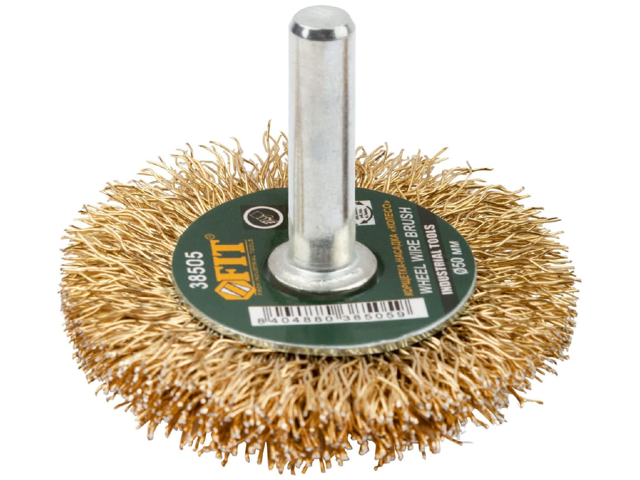 Корщетка-колесо со штифтом стальная латунированная волнистая проволока 50мм