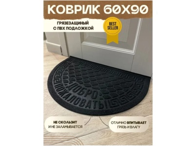 Коврик влаговпитывающий Добро пожаловать черный полукруг (0,60*0,90м)