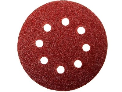 Круг надежно прикрепляется к опоре шлифмашины за счет наличия на шлифовальной бумаге специальной ткани. 8 отверстий.