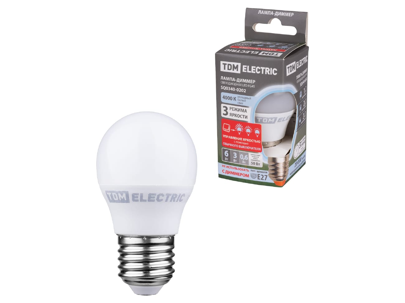 Три режима яркости – управление яркостью с помощью обычного выключателя.