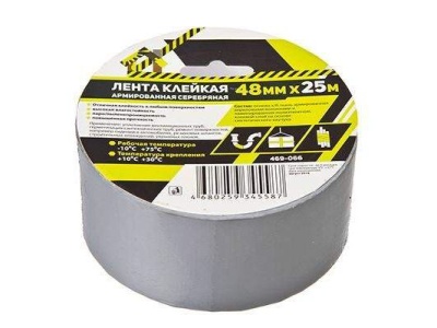 Армированная клейкая лента ЕРМАК, усиленная для повышенной прочности. Размер 48 мм на 25 метров. Цвет серебристый.