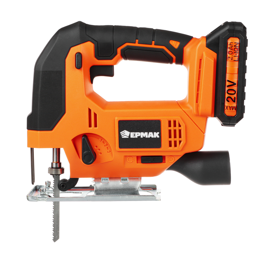 Электрический аккумуляторный лобзик ЕРМАК X-PRO с единой аккумуляторной батареей и бесключевым зажимом предназначен для работ по дереву и металлу. Имеет функцию регулировки оборотов от 0 до 2500 об/мин и маятниковый ход. Максимальная глубина пропила в дереве – 65 мм, в металле – 8 мм. Наличие LED-подсветки позволяет проводить работы в условиях недостаточного освещения и контролировать процесс пропила. Аккумуляторная платформа ONE с литий-ионной батареей 20V max и универсальным зарядным устройством подходит для всех моделей электроинструмента серии ЕРМАК «ONE». Характеризуется стабильной производительностью и не теряет мощность на протяжении всего цикла работы.
