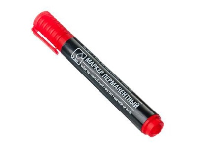 Маркер перманентный красный с пулевидным наконечником. Ширина линии 3 мм. Для надписей на любых поверхностях.