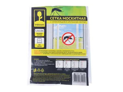 Москитная сетка для окон с крепежной лентой 1,5*2,0м INBLOOM (88шт/кор)