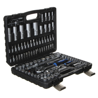 Набор автоинструментов РОКОТ 108 предметов 1/4"+1/2". Профессиональный набор для автосервиса в пластиковом кейсе. Включает 108 предметов: карданы 1/2" и 1/4", удлинители 1/2" (125,250 мм) и 1/4" (50,75 мм), свечные головки 16,21 мм, вороток Т-образный, переходник, битодержатель, трещотки 1/2" и 1/4", отвертку с квадратом 1/4", головки TORX 1/4" (5 шт), головки торцевые 1/2" (17+5 шт), головки TORX 1/2" (8 шт), головки 1/4" (13+8 шт), шестигранные ключи 1.5-2.5 мм, отверточные головки 1/4" (18 шт). Закаленная сталь. Характеристики: количество: 108 предметов | бренд: РОКОТ | вес: 6,8 кг | размер упаковки: 40x30x10 см