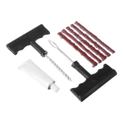 Профессиональный набор №2 для быстрого ремонта проколов бескамерных шин в дорожных условиях. Включает специальный клей для герметизации, 5 прочных ремонтных жгутов и удобный Т-образный монтажный инструмент для легкого ввода жгута в повреждение. Надежное решение для автомобилистов, мотоциклистов и велосипедистов. Бренд New Galaxy.