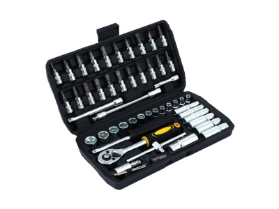 Набор инструментов 53 предмета Ergosystem Гаражный. Автомобильный набор инструментов в пластиковом кейсе. Включает 53 предмета: отверточные головки 1/4" (21 шт), удлинители 1/4" 50 и 100 мм, гибкий удлинитель 150 мм, переходник, торцевые головки 1/4" (13 шт) и удлиненные (7 шт), отвертку с квадратом 1/4", трещотку 1/4", вороток Т-образный, карданный шарнир, шестигранные ключи 1.5-2.5 мм. Углеродистая сталь премиум качества. Характеристики: количество: 53 предмета | бренд: Ergosystem | вес: 1,5 кг | размер упаковки: 4,9х13,3х23,5 см