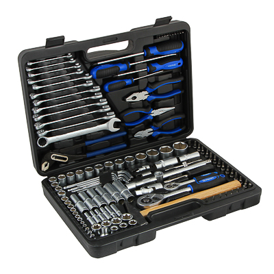 Набор инструментов РОКОТ 121 предмет. Профессиональный набор инструментов в кейсе-органайзере. Включает 121 предмет: держатель для бит, карданы 1/2" и 1/4", удлинитель, переходник, молоток, переставные клещи, кусачки, биты 1/4" (10 шт), свечные головки 16,21 мм, вороток Т-образный, трещотки 1/2" и 1/4", отвертку с квадратом, плоскогубцы, тонкогубцы, головки торцевые 1/4" (13+6 шт) и 1/2" (15+6 шт), головки TORX 1/2" (8 шт), отверточные головки 1/4" (22 шт), комбинированные ключи. Хромованадиевая сталь. Характеристики: количество: 121 предмет | бренд: РОКОТ | вес: 9,8 кг | размер упаковки: 48x34x10 см