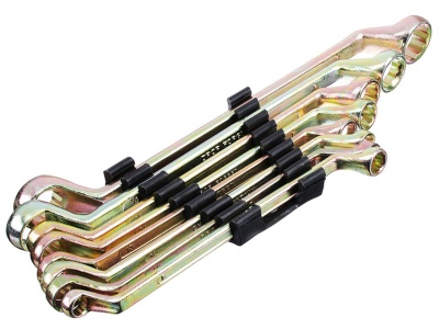 Комплект накидных двусторонних ключей. Размеры: 8х10, 9x11, 10х12, 12х13, 13х14, 14х17, 17х19, 19x22 мм. Покрытие желтый цинк, твердость 42HRc. Пластиковый подвес. Характеристики: размеры: 8х10-19x22 мм | количество: 8 шт | бренд: ЕРМАК | вес: 1,148 кг | размер упаковки: 30,6x11,6x3,3 см