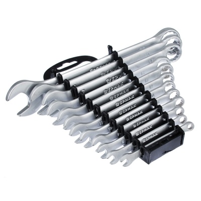 Расширенный набор комбинированных ключей из хромованадиевой стали с матовым покрытием. Размеры: 6, 7, 8, 9, 10, 11, 12, 13, 14, 17, 19, 22 мм. Твердость 45HRc. Пластиковый холдер. Характеристики: размеры: 6-22 мм | количество: 12 шт | бренд: ЕРМАК | вес: 0,996 кг | размер упаковки: 26,8x18x4,6 см