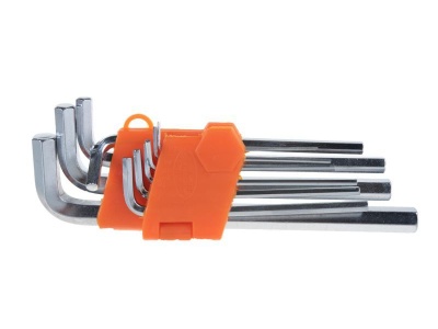 Набор Г-образных шестигранных ключей в блистерной упаковке. Размеры от 1,5 до 10 мм. Углеродистая сталь, устойчивость к износу. Характеристики: размеры: 1,5-10 мм | количество: 9 шт | бренд: ЕРМАК | вес: 0,28 кг | размер упаковки: 21x21x1 см