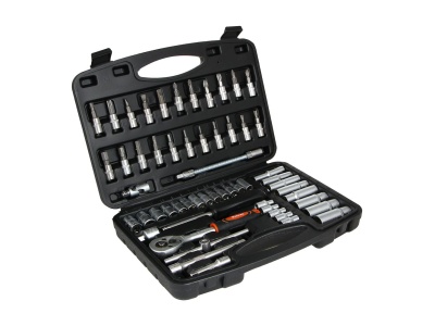 Большой набор инструментов в пластиковом кейсе. Включает 56 предметов из хромованадиевой стали. Отвертки, биты, головки, трещотки, адаптеры. Характеристики: количество: 56 предметов | бренд: ЕРМАК | вес: 1,65 кг | размер упаковки: 18х27,8х4,8 см