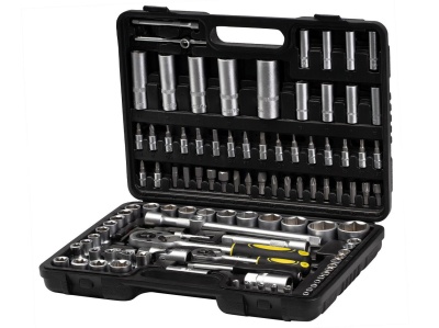 Профессиональный набор инструментов в кейсе. Включает 107 предметов: торцевые головки 1/4" (18 шт + 8 глубоких), головки 1/2" (25 шт + 5 глубоких), головки со вставками, свечные головки, удлинители, переходники, карданы, трещотки, вороток, биты 30мм (17 шт), шестигранные ключи (3 шт). Характеристики: количество: 107 предметов | бренд: Kolner | вес: 6,6 кг | размер упаковки: 32x28x70 см