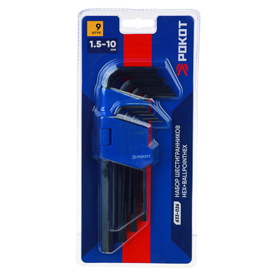 Набор Г-образных шестигранных ключей с шариковым наконечником (BallpointHex) для работы под углом. Позволяют затягивать и ослаблять крепеж при отклонении оси ключа до 25°. Характеристики: размеры: 1,5-10 мм | количество: 9 шт | тип: HEX+BallpointHex | бренд: РОКОТ | страна: Китай