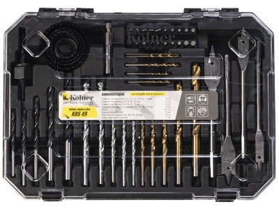 Набор сверл и бит в пластиковом кейсе 49 шт Kolner KDS 49 – универсальный набор инструментов. Включает 23 сверла по дереву, металлу, бетону и набор бит. Пластиковый кейс для хранения и транспортировки.