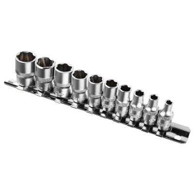 Компактный набор торцевых головок с профилем "Супер лок". Размеры: 4-13 мм, 10 предметов. Посадочный квадрат 1/4". Хромованадиевая сталь. Характеристики: размеры: 4-13 мм | количество: 10 шт | бренд: ЕРМАК | страна: Китай