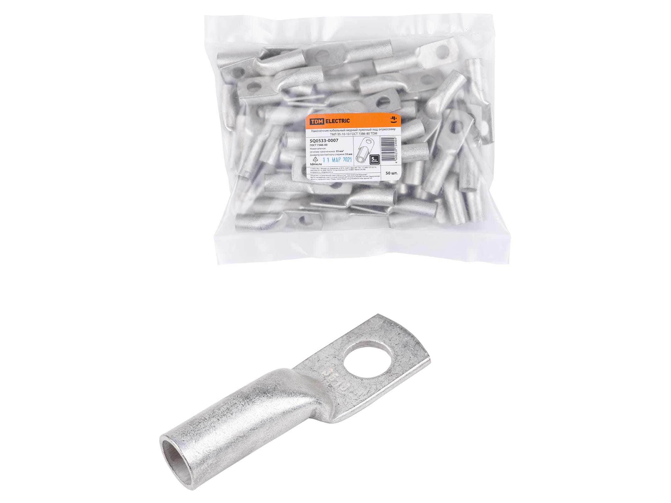 Наконечник кабельный медный луженый под опрессовку ТМЛ 35-10-10 ГОСТ 7386-80 TDM (50шт/уп)
