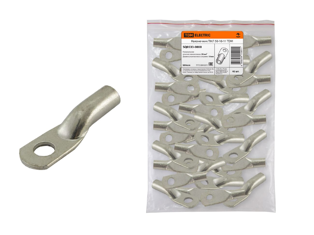 Наконечник кабельный медный луженый под опрессовку ТМЛ 50-10-11 ГОСТ 7386-80 TDM (50шт/уп)