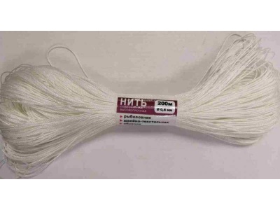 Нить полиэфирная высокопрочная d-0.8, 200м, рыболовная, швейно-текстильная, обувная (500шт/кор)