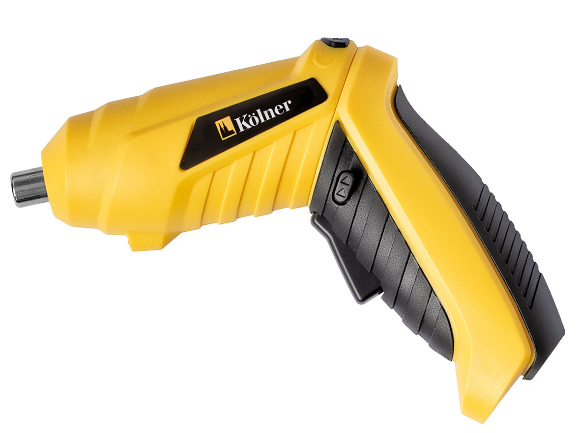 Отвертка аккумуляторная Kolner KCSD 3,6В 250об/мин 3,5Нм 1,3Ач Х. Беспроводная отвертка с Li-Ion аккумулятором. Подсветка, поворотная рукоятка, реверс. В комплекте 9 бит и USB-кабель.