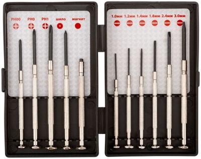 Отвертка набор часовые 11 предметов для точных работ с мелкими механизмами. Включает 11 миниатюрных отверток в пластиковом футляре.