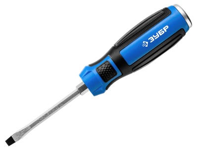 Отвертка SL 5*75мм ударная двухкомп ручка магнитный наконечник ЗУБР Профессионал УДАРНИК. Плоский шлиц 5 мм. Ударная конструкция. Магнитное жало. Длина 75 мм.