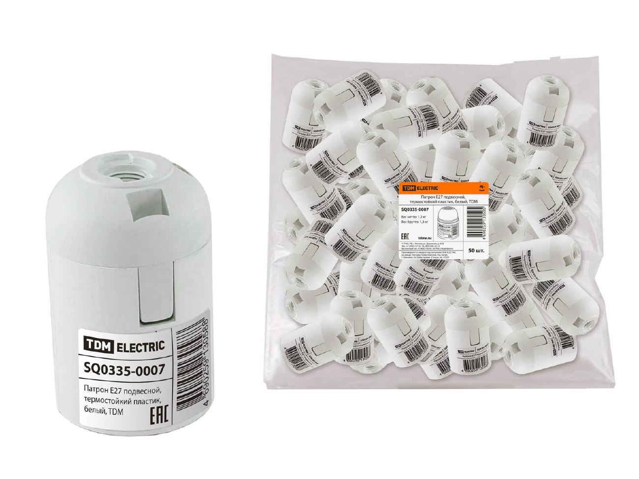 Патрон Е27 термостойкий пластик подвесной белый TDM