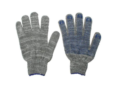 Перчатки х/б 4 нити 10 кл. ПВХ Точка "ЛЮКС" Серые (10шт/уп)(300шт/меш)