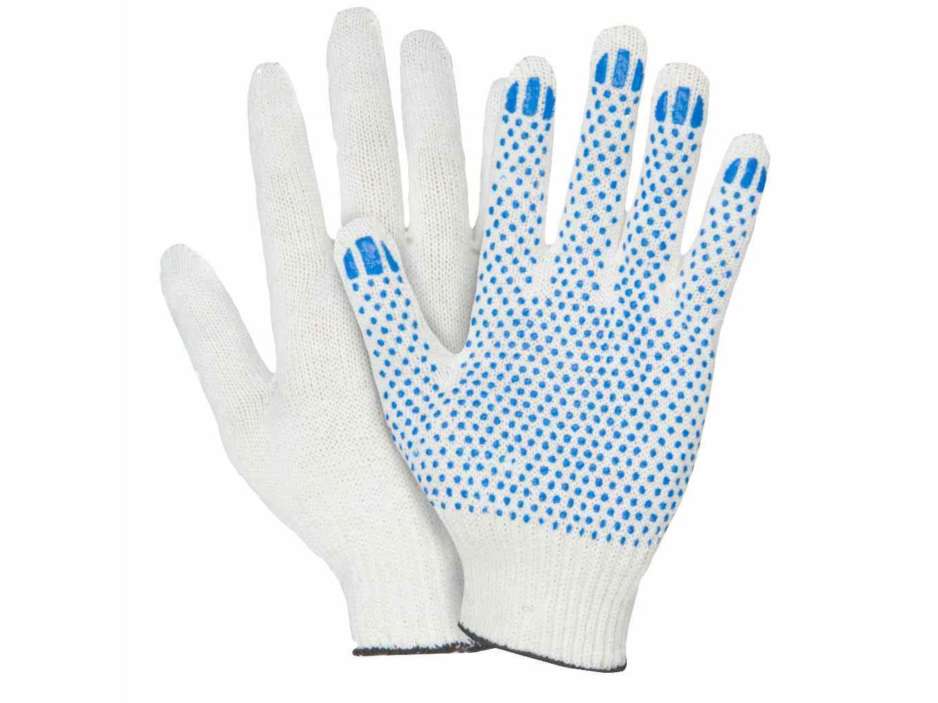 Перчатки х/б 4 нити ПВХ Точка Белые (10шт/уп) (200шт/меш)